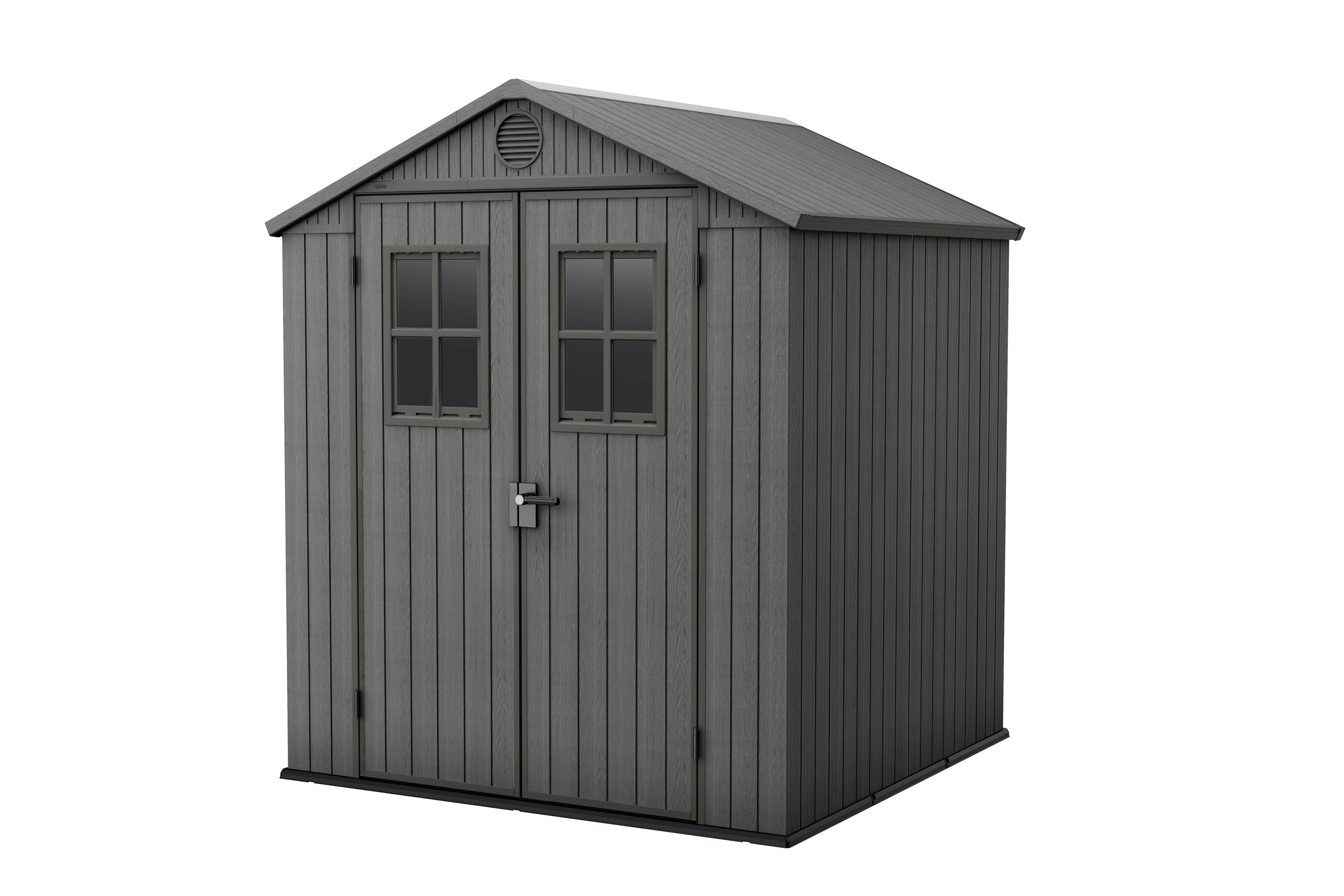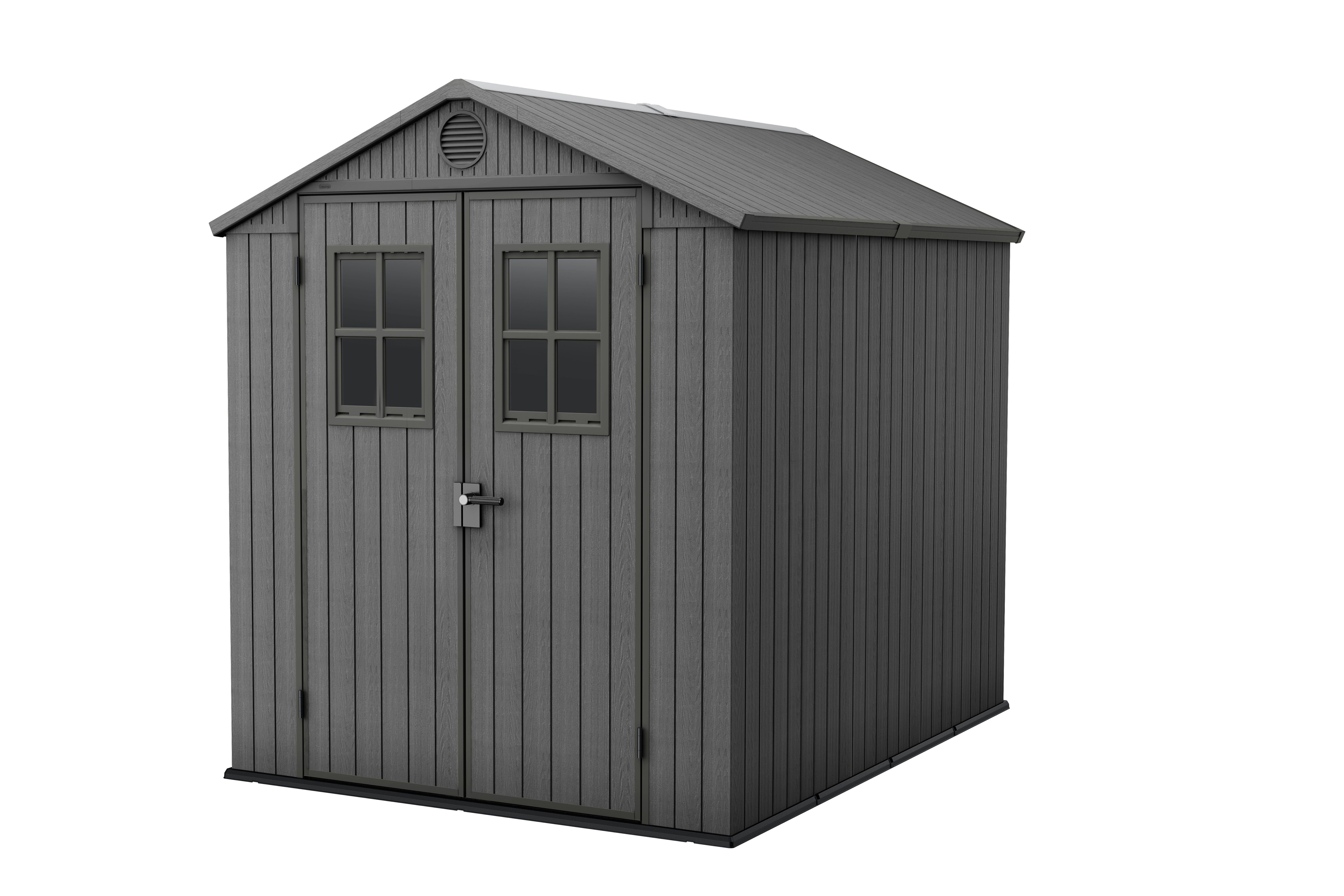 Elegance meets practicality - this evolution of the Keter Darwin shed features 2 door windows with trims, giving it that classic shed character! This larger model...