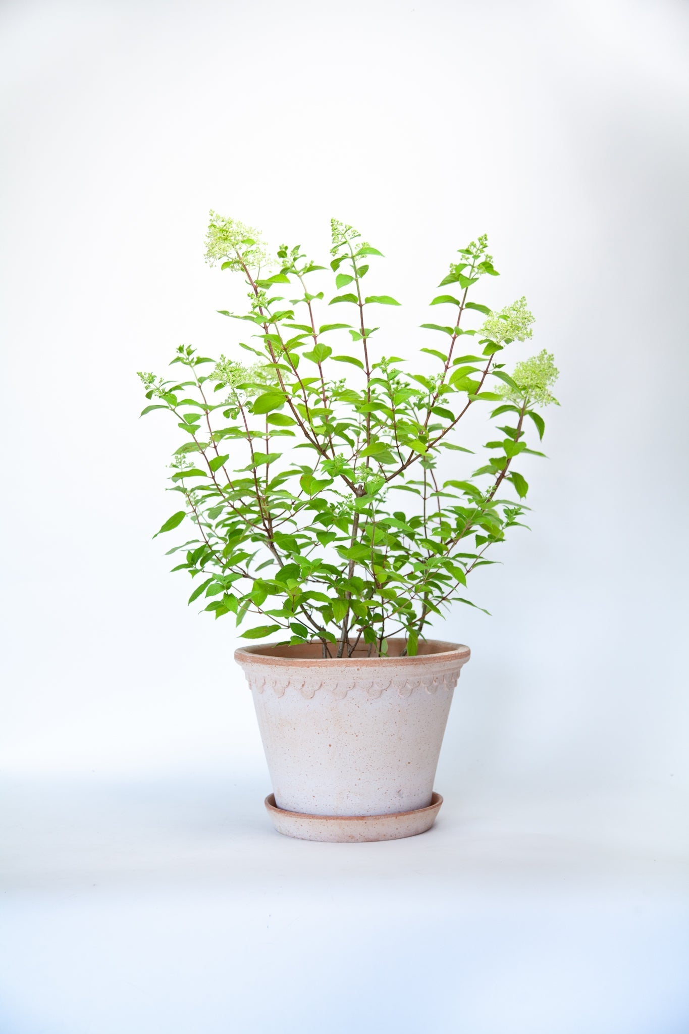 Hydrangea Limelight produces large cone shaped blooms that start as a green bud developing through cream to a pink finish, providing a show-stopping effect.
