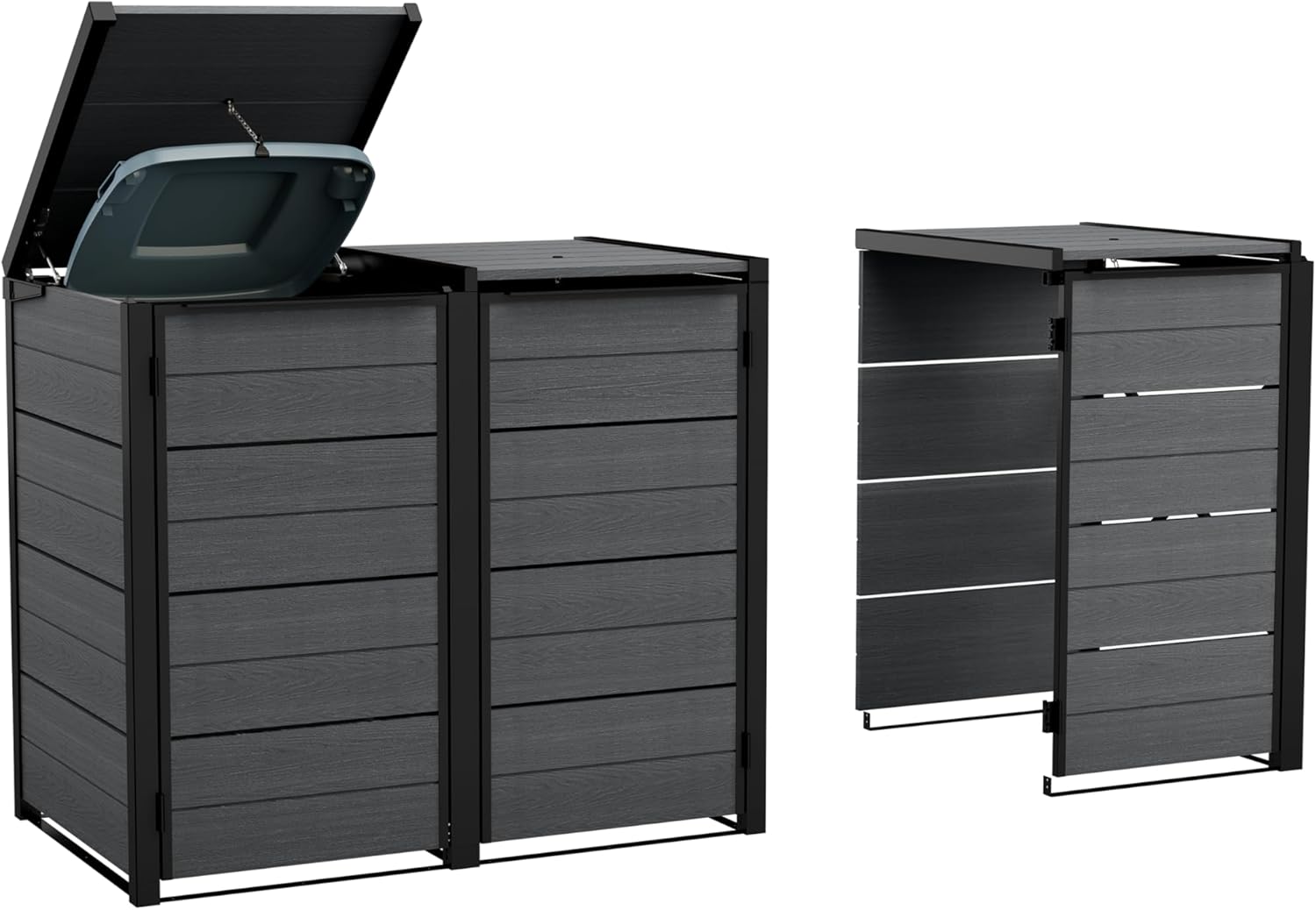 They come in a wide range of finishes, including our exclusive Evotech material. The base model includes two units to store two bins; with the extension kit, it can be expanded to accommodate as many additional bins as you need - perfect for sorting recycling or for owners who generate a lot of trash.