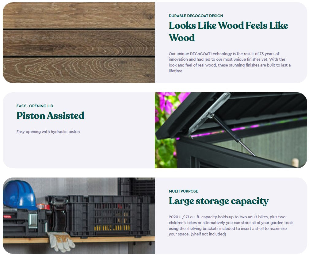 Classic Aesthetic: Premium construction in stunning wood-look finishes delivers style & beauty to your outdoor storage space.