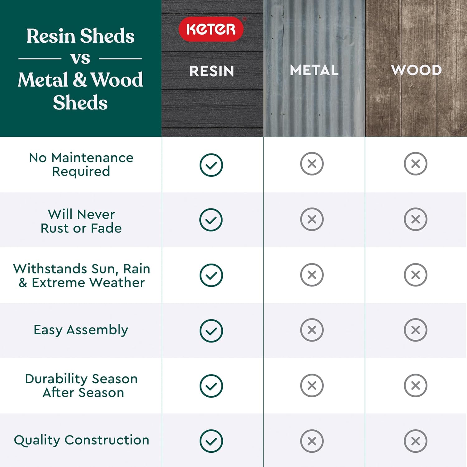 The Keter Essential 6 x 4 outdoor storage shed might just be the solution you’re looking for! In contrast to conventional metal or wooden sheds, this durable resin shed is resistant to rot, peeling, and denting.