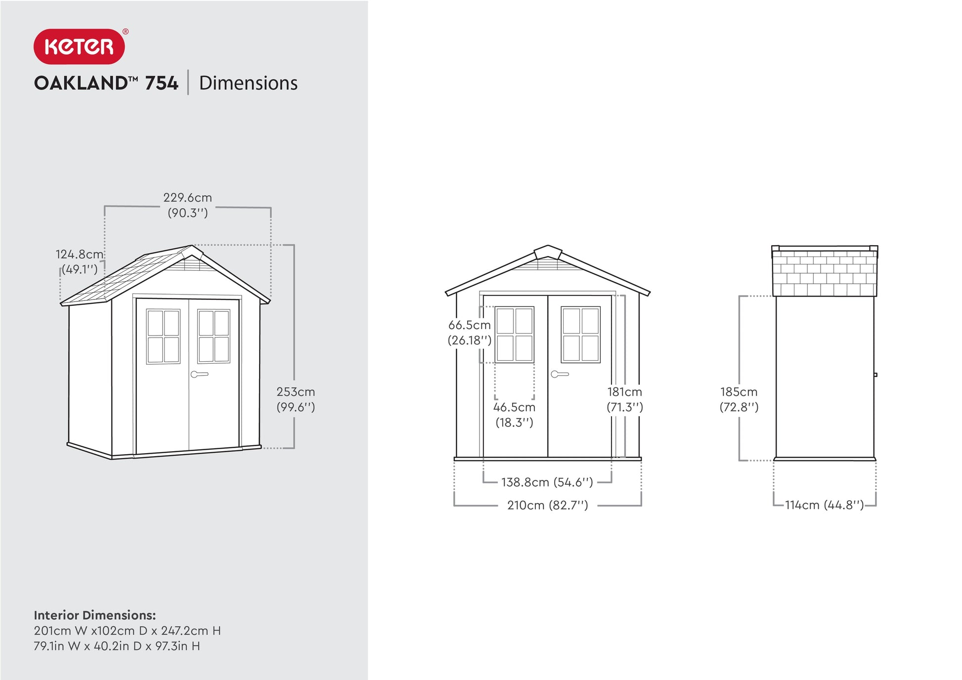 Oakland 754 is the newest addition to Keter's Oakland product family. Oakland 754 is functional, zero-maintenance storage sheds. It's the shed that meets your storage needs season after season. Constructed for strength from top to bottom. The Oakland 754's rib reinforced, double-wall The steel reinforced roof supports up to a 150-kilogram snow load and Oakland's heavy-duty floor stands up to years of wear and tear.