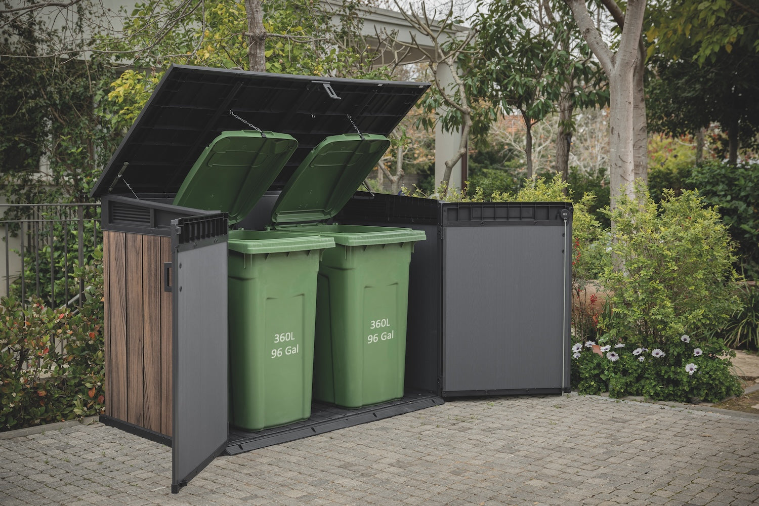• Spacious Design: Durable & long-lasting double doors with 2020L of interior space, it comfortably accommodates two 360L or three 240L garbage cans, plus additional items like bikes and gardening tools.